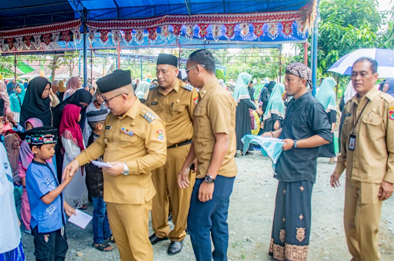 Pasca sambutan, Bupati secara memberikan santunan secara simbolis kepada 150 yatim-piatu dan bingkisan kepada Majelis Ta’lim di 3 kecamatan yakni Simpang Raya, Bunta dan Nuhon.