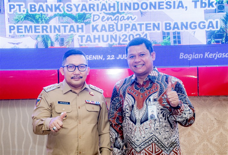 Puja Nur Arief dan Bupati Banggai H. Amirudin pada Senin (22/07/24) melakukan Penandatanganan Naskah Kesepakatan Bersama dan Perjanjian Kerjasama antara PT Bank Syariah Indonesia dengan Pemerintah Kabupaten Banggai. Kesepakatan dan Perjanjian Kerjasama tersebut meliputi Pemanfaatan Produk dan Jasa Layanan Perbankan Syariah di Kabupaten Banggai.