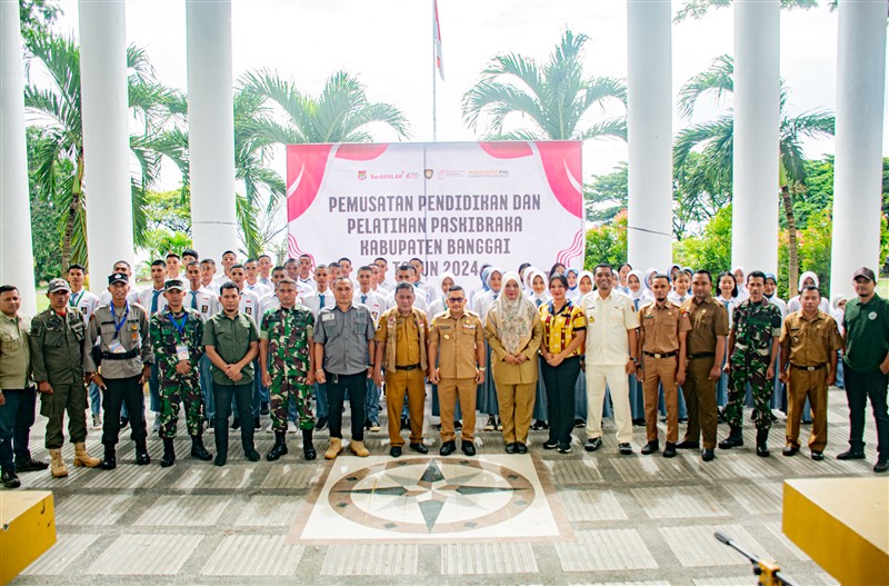 LUWUK – portalbanggai.com (09/07/2024). Bupati Banggai Ir. H. Amirudin, M.M. pada Selasa ((09/07/2024) membuka secara resmi kegiatan Pemusatan Pendidikan dan Pelatihan Paskibraka Kabupaten Banggai Tahun 2024 di pelataran gedung Kantor Bupati Banggai Bukit Halimun Luwuk. Kegiatan ini dihadiri oleh Kaban Kesbangpol Syaifudin Muid, S.H. dan jajarannya serta sejumlah Kabag di lingkup Setda Kabupaten Banggai dan para peserta pusdiklat.
