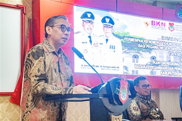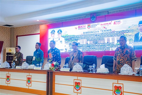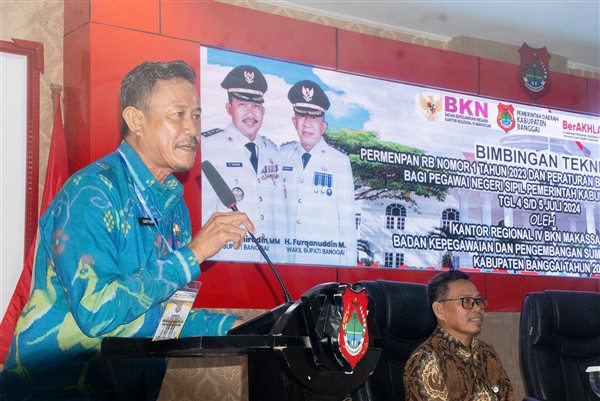 Hal tersebut disampaikan Bupati Banggai melalui sambutan tertulis yang disampaikan oleh Pj. Sekretaris Daerah Kabupaten Banggai Ir. Moh. Ramli Tongko, S.Sos., S.T., M.Si. saat membuka kegiatan Bimbingan Teknis Bagi Pegawai Negeri Sipil Pemerintah Kabupaten Banggai Tahun 2024. Kegiatan yang dilaksanakan oleh Badan Kepegawaian dan Pengembangan Sumber Daya Manusia (BKPSDM) Kabupaten Banggai di Ruang Rapat Umum Kantor Bupati Banggai ini, diikuti oleh kurang lebih 150 peserta dari Kepala Sub Bagian Kepegawaian dan pegawai yang menduduki jabatan fungsional dari berbagai OPD Kabupaten Banggai.