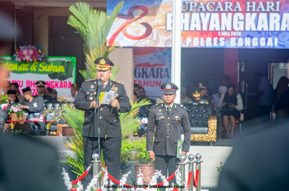 Kapolres Banggai AKBP Ade Nuramdani, S.H., S.I.K., M.M. dalam upacara tersebut membacakan sambutan tertulis Kapolda Sulawesi Tengah Irjen Pol. Dr. Agus Nugroho, S.I.K., S.H., M.H.